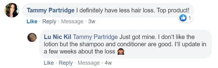I'm very satisfied with this product. The hair loss has decreased significantly.